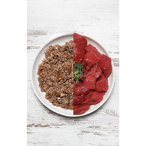 SKŁAD: Wołowina 91% (mięso wołowe 48%, serca wołowe 27%, wątroba wołowa 16%), minerały, olej lniany, algi morskie, glinka mineralna, sproszkowane skorupki jaj.