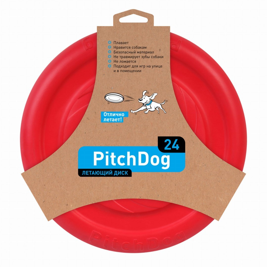 Dysk PitchDog  to zabawka z unikalnego materiału, spienionego polimeru, który jest lekki jak pianka i elastyczny jak guma.  Dysk ma średnicę 24 cm, ale ponieważ jest bardzo i lekki i wytrzymały nadaje się dla psów zarówno mniejszych jak i większych ras.