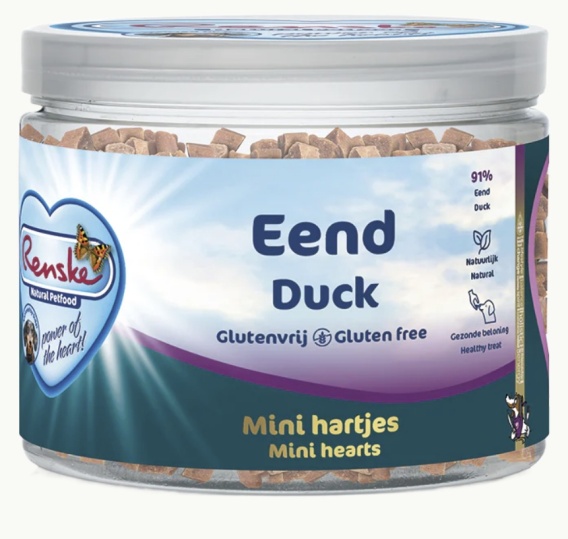 Przysmaki w kształcie małych, lekko miękkich serduszek (średnia wielkość 0,8 cm) są idealne dla psów małych ras. Są wyjątkowo smaczne, a zawierają 91% najwyższej jakości mięsa kaczki i niską zawartość tłuszczu.