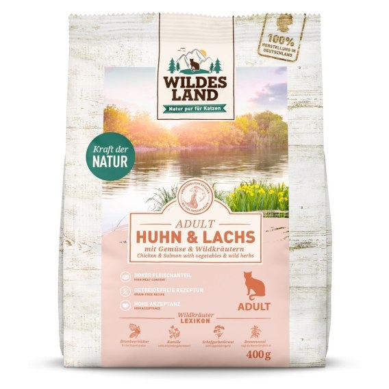 WILDES LAND CAT Huhn Lachs - kurczak i łosoś z warzywami i ziołami (400g)