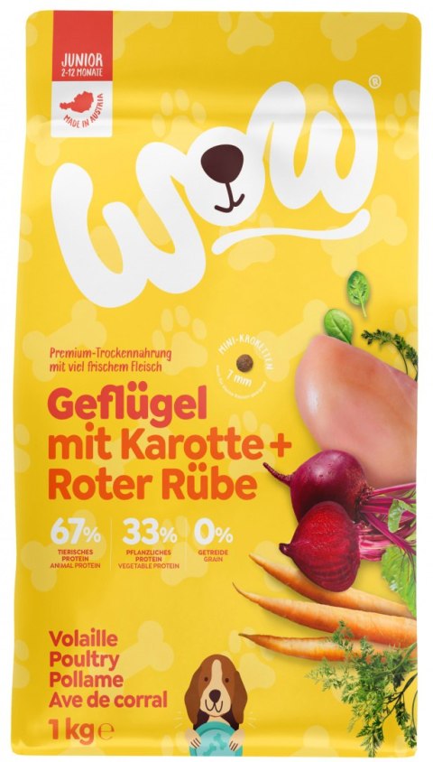WOW MINI Junior Geflügel - drób i łosoś z marchewką i buraczkami dla szczeniąt małych ras (1kg)